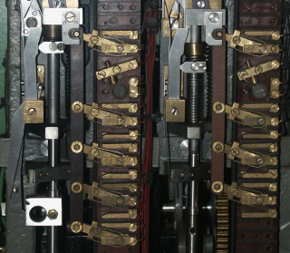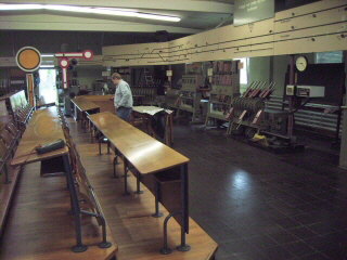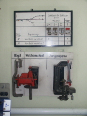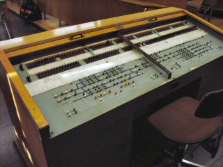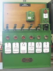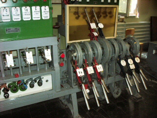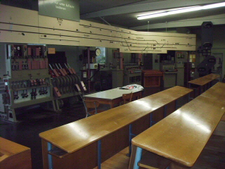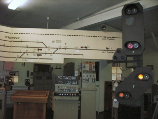 Zusätzlich wurde der komplette funktionelle Ablauf auf Tafeln über den Schaltpulten und Hebelbänken dargestellt und simuliert. |