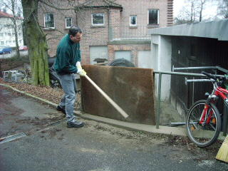 Unglaublich, welch ein Dreck sich in all den Jahren in dem großen "Schuhabstreifer" im Eingangsbereich abgelagert hatte. Nach mehrstündigem Bearbeiten wurde dieser Teppich als "sauber" erklärt! |