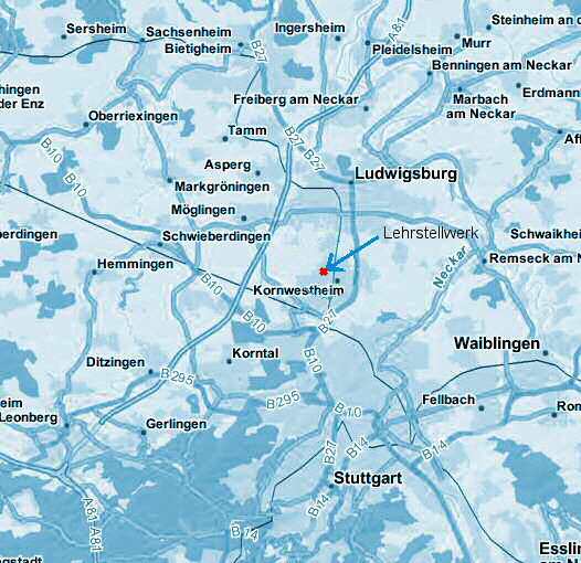 Autobahn A81 Ausfahrt 15/16 "Ludwigsburg Süd"; Schwieberdinger Straße Richtung Ludwigsburg. In Ludwigsburg, nach Überqueren der Brücke am Bahnhof nach ca. 120m rechts abbiegen, in die Hohenzollernstr. Richtung Kornwestheim. In Kornwestheim 1. Kreuzung rechts in die Pflugfelder Str. bis zur Y-Kreuzung, dort links in die Villeneuvstr. nach ca. 220m - 1. Straße rechts, in die Jahnstr.