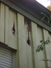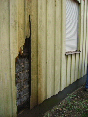 Leider hat der Bewuchs, die Witterung und ein Specht dafür gesorgt, dass an der Wetterseite größerer Schaden entstand.