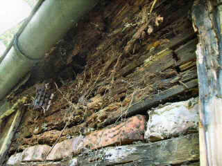 Und so sieht es dahinter aus! Alles morsch und bröckelig.